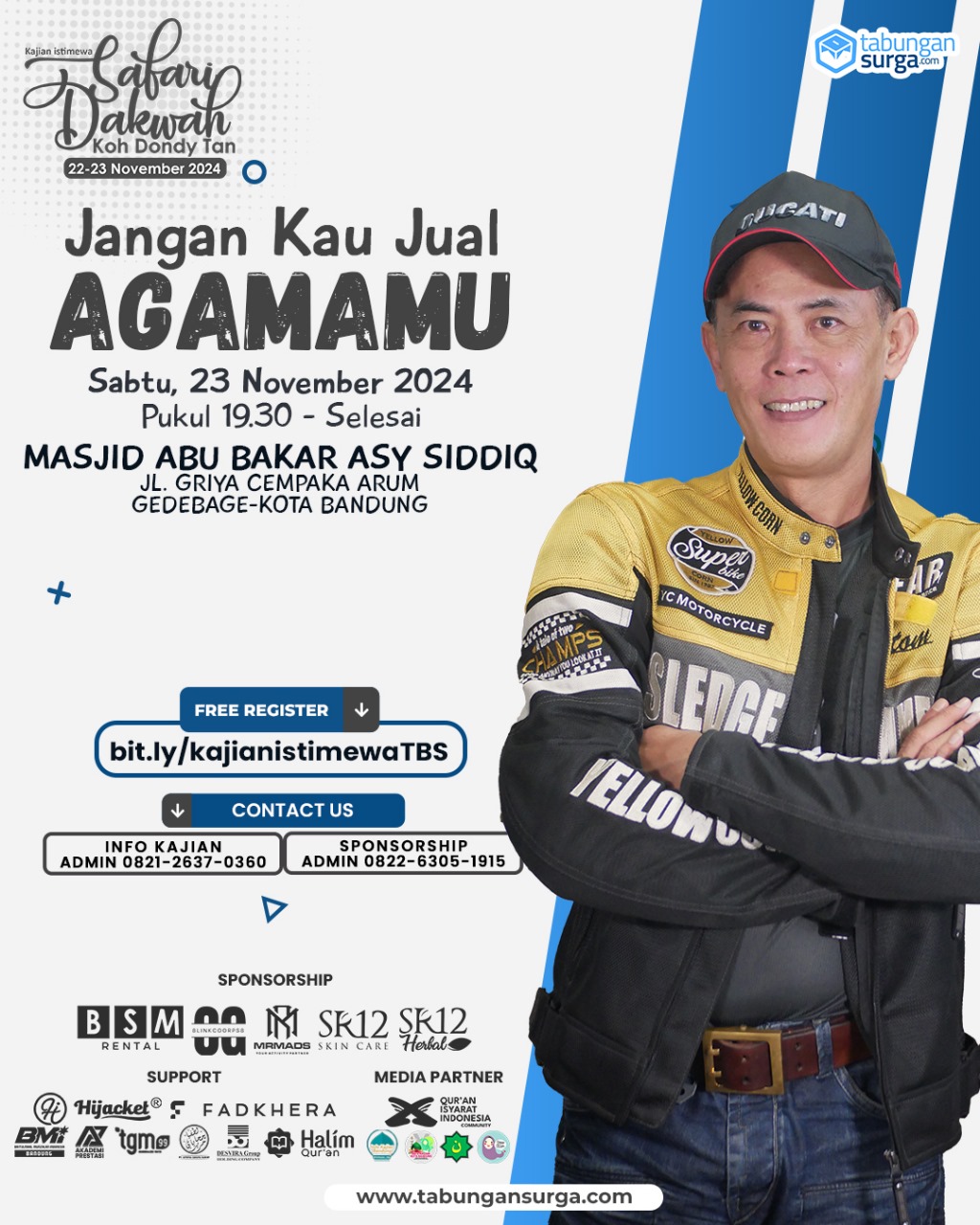 Dondy Tan dan Tim mengadakan Safari Dakwah ke kota Paris van Java Bandung sejak tanggal 22 hingga 24 November 2024 yang diprakarsai dan diurus oleh sebuah komunitas bernama Tabungan Surga.